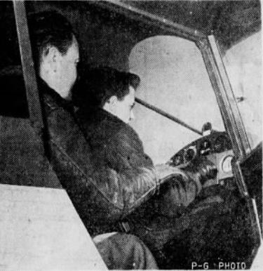 “Commander James Mulva confers with Air cadet James Clumpner in the cockpit of their plane before taking off to launch the first Boy Scout flight program in history”